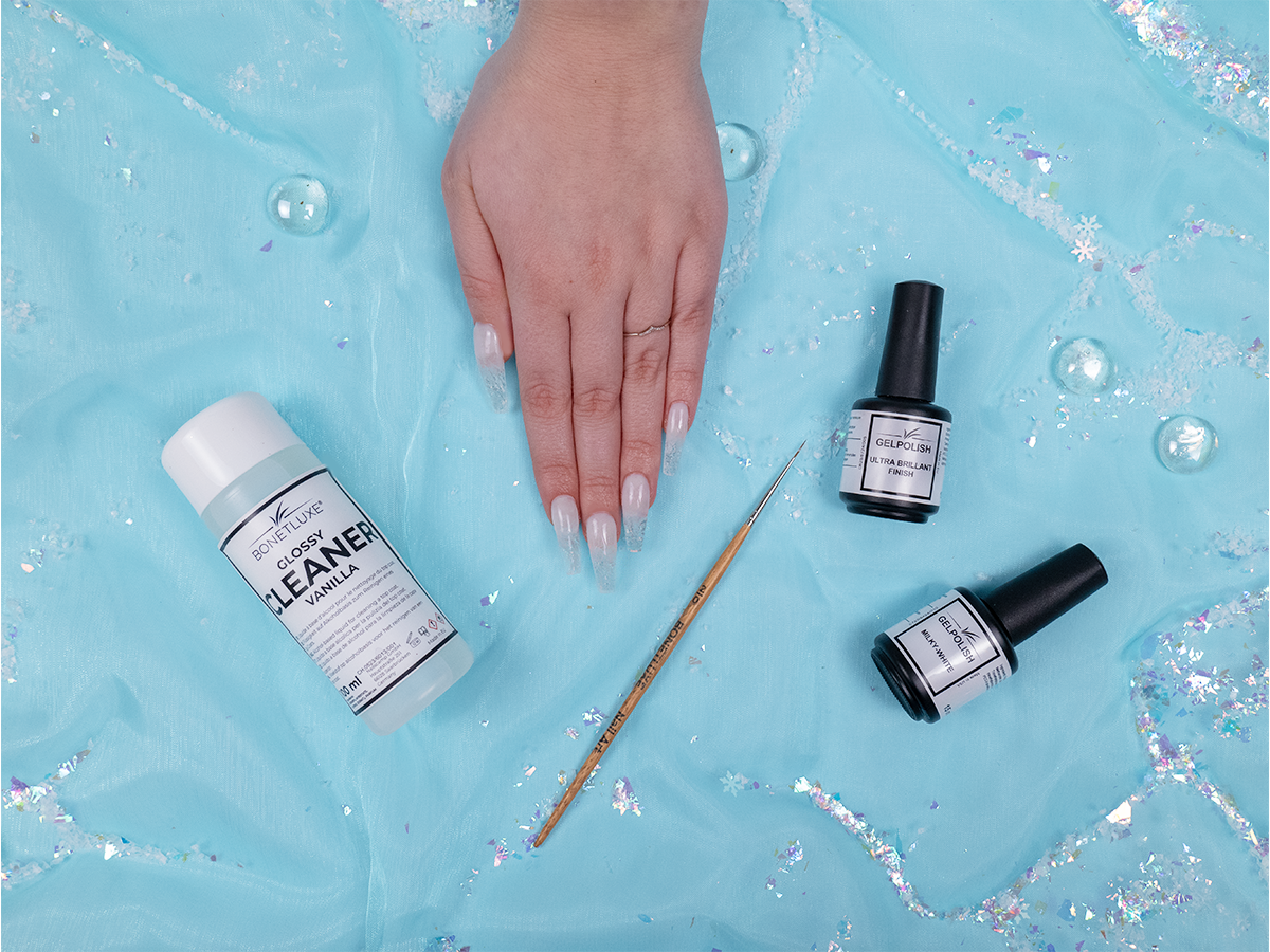 Le unghie sono rifinite con un effetto 3D e sono completamente trasparenti. Questa creazione è possibile con pochi prodotti e in pochissimo tempo. Vi mostriamo come realizzarla in questo tutorial!